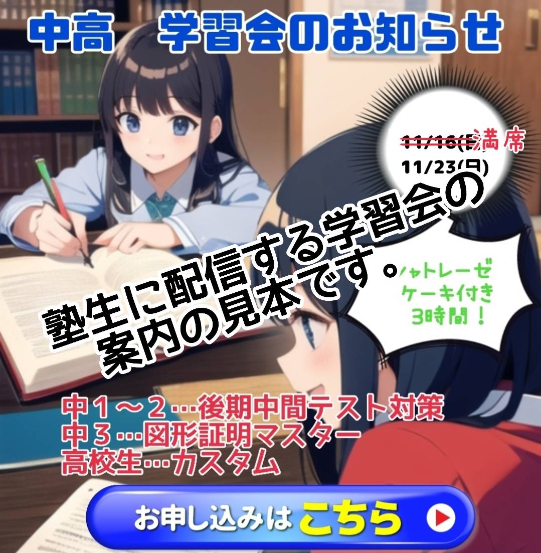 不定期に日曜日に学習会を開催します。だいたい定期テストの直前にやることが多く、希望者制です。(有料となります)