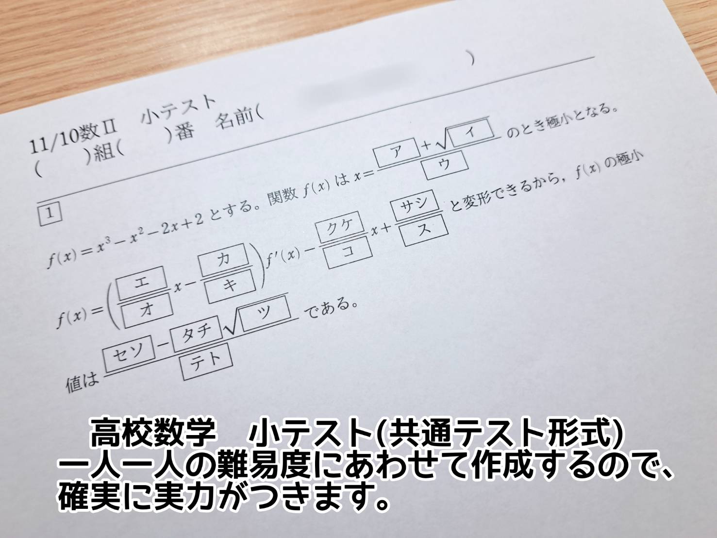 高校クラスではすべて市販品の『受験の王道』といわれるテキストを採用。また教材作成システムとも連携しているので、小テストなども一人一人にあわせて作成可能です。