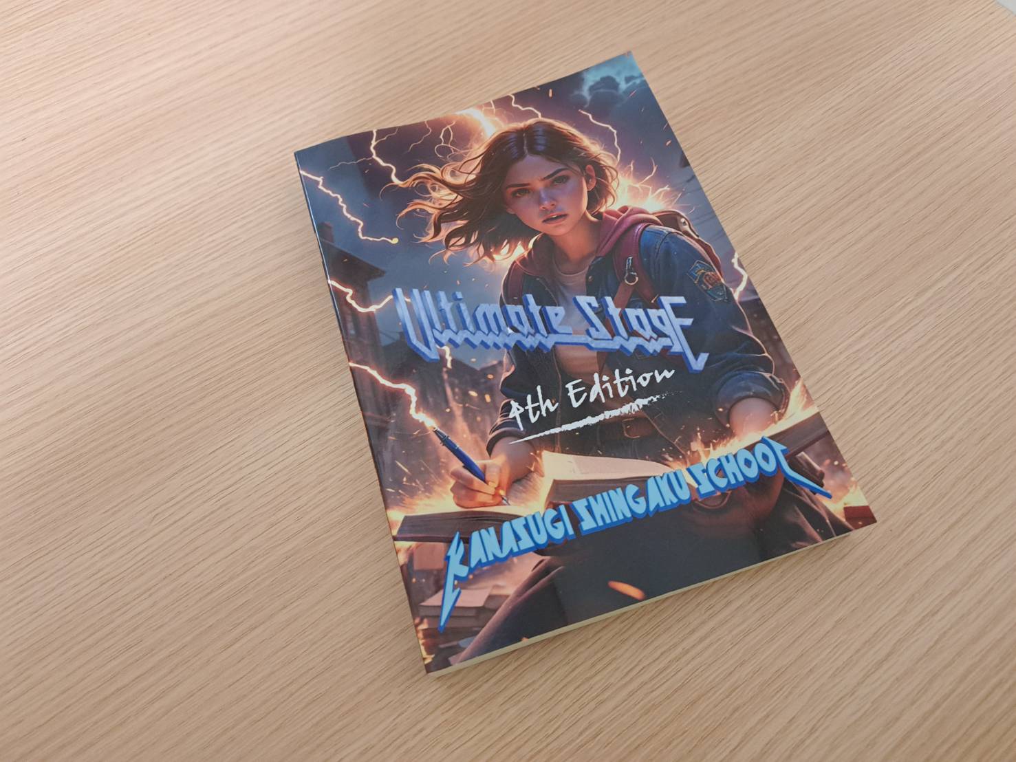 当教室オリジナル参考書『アルティメットステージⅣ』です。全教科・全単元の公式や重要なポイントが載っていますので夏期講習・冬期講習などで復習をするときや、入試対策に使用します。 中2より購入していただいております。(8,000円)